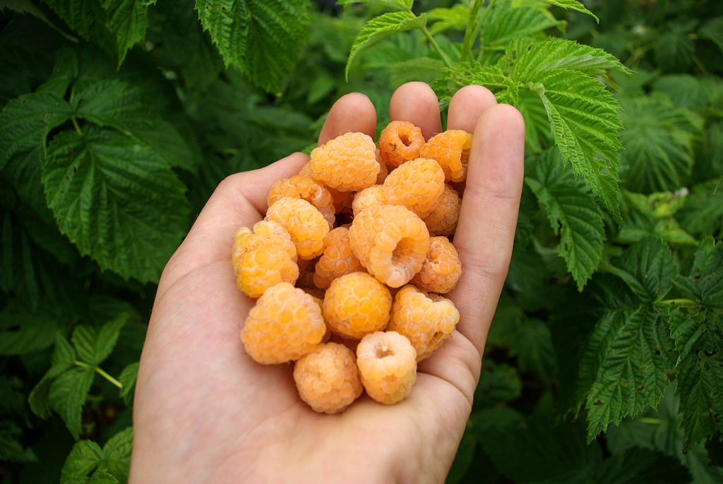 Малина Фалл Голд – очень урожайный сорт (около 4 кг с куста) немецкой селекции, который радует красивыми золотисто-желтыми плодами с июля до первых заморозков. Округлые плоды очень сладкие, ароматные, средней массой 4-7 г. Сорт отличается хорошей транспортабельностью и высокой устойчивостью к вредителям и болезням.