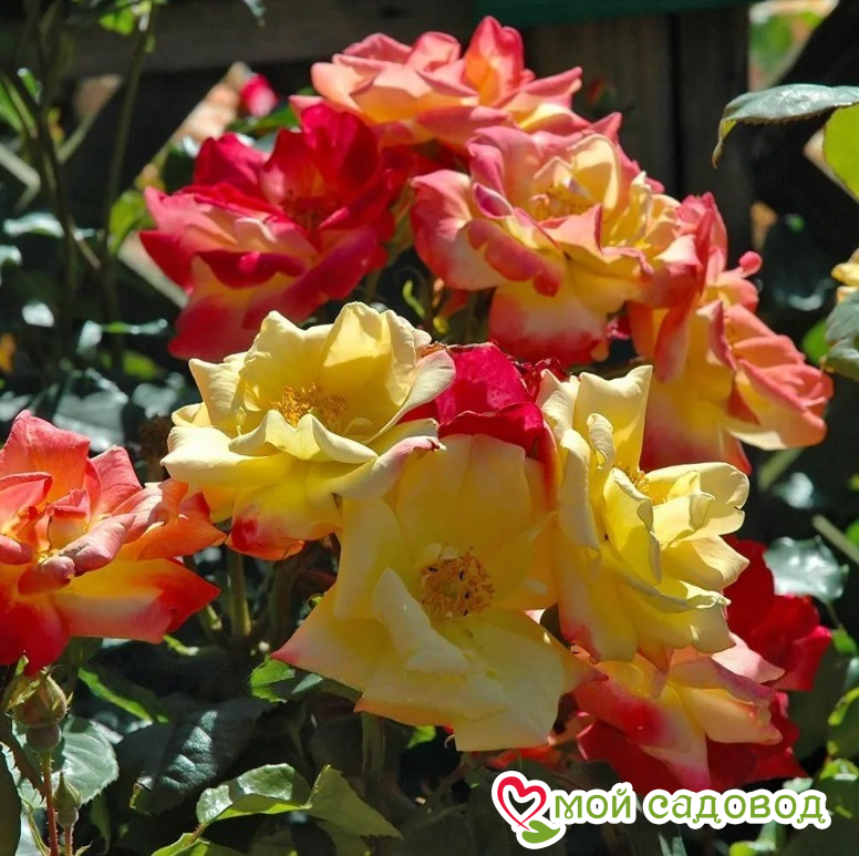 Главное преимущество данного растения перед другими розами из группы флорибунд состоит в наличии на сильном, шаровидном кусте с мощными побегами совершенно очаровательных цветов. В стадии бутонов они имеют желто-оранжевый окрас, а когда раскрываются, приобретают сначала нежно-розовый, а чуть позже — насыщенный малиновый оттенок. Такая изменчивость цветовой гаммы позволяет получить удовольствие от созерцания декоративного многолетника на протяжении всего периода его цветения. Кстати, именно за счет столь неординарной окраски растение и получило свое запоминающееся название.